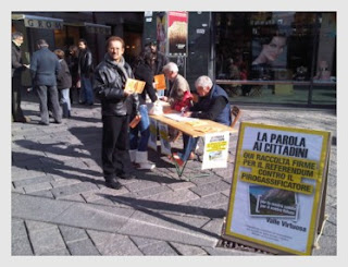 Con la bella giornata di ieri (vien da pensare che ai piani alti, quelli veri, il piro non piaccia poi tanto) abbiamo superato quota 3000. Finora abbiamo avuto splendide giornate che hanno agevolato la raccolta delle firme! Continuiamo così!